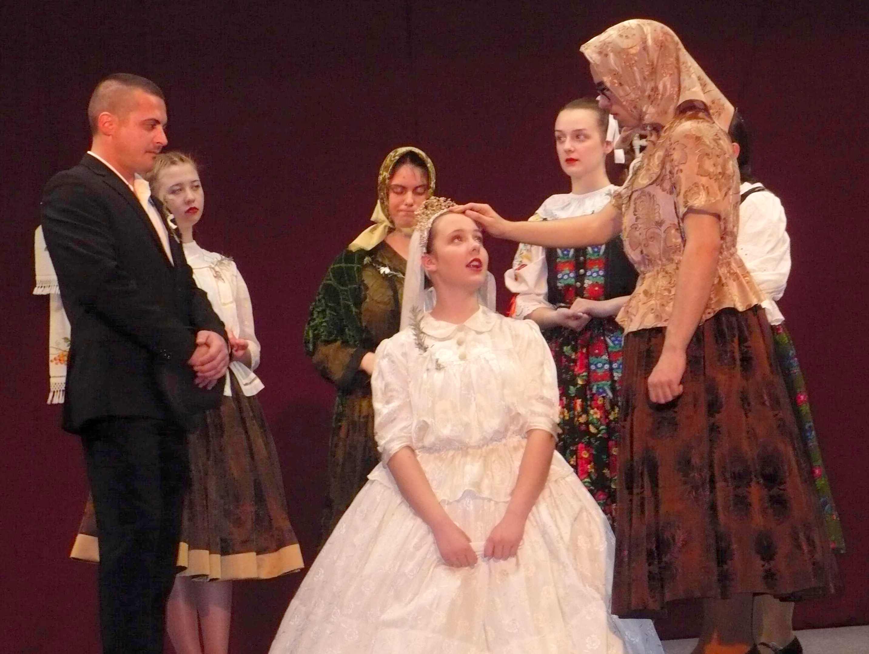Náročný program dňa pokračoval v kultúrnom dome. Dlhoročná obetavá organizátorka a režisérka Divadla Nádej profesorka PhDr. Elena Kmeťová sa znova vrátila k Jozefovi Hollému a jeho Kubovi po viacerých inscenáciách hier slovenských autorov. Veľmi vtipne aranžovaným predstavením s hercami v dobových krojoch aj s neobvyklým obsadením, keď niektoré úlohy mužov hrali dievčatá a ženských úloh sa úspešne zhostili chlapci. A veruže všetci účinkujúci hrali veľmi presvedčivo, lebo až v závere vystúpenia pri predstavovaní jednotlivých účinkujúcich diváci zistili, kto vlastne bol pod maskou ženy, či muža a odmenili ich výkony už v priebehu dvoch predstavení v Bratislave i Budmericiach niekoľkonásobným potleskom. Ocenili aj verbálny prednes textov v čistom slovenskom jazyku napriek tomu, že časť hercov pochádza zo zmiešaných rodín rumunsko-slovensko-maďarských, ktorých otec alebo matka má slovenské korene. Zlatým klincom bola scénka svadobného obradu s hudobným sprievodom dychovej hudby Nadlačanka. Aj táto návšteva mladých ľudí z Rumunska potvrdila, že slovenská reč za hranicami stále žije a medzi krajanmi existuje úprimný vzťah k Slovensku, vyjadrený v jednej z piesní spred piatich rokov v Budmericiach: „Tak, ako dnes aj včera srdce dávno vie už, ty si zem krásna moja…“