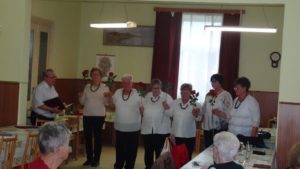 V rámci programu sme pre nich pripravili prednášku o odkaze štúrovcov. Predstavili sme im aj osobnosti z nášho okolia. Mali možnosť dozvedieť sa fakty, ktoré možno nezachytili v kolobehu každodenných povinností, ktoré mali. O kultúrny program sa nám postarali milé ženičky z Rudnej. Modré fialky sme predstavovali už v projekte zviditeľňovania nadaných Gemerčanov. Krásny program zavŕšila Mária Kohuláková, ktorá so sebou priniesla aj darčeky v podobe jej malieb. Farebné kvietky rozžiarili očká a potešili srdiečka. Po programe sa nerozbehli všetci domov, ale v družnej debate sme spolu strávili pekné popoludnie. Možno aj to, že si ich niekto vypočuje im pomôže pri prekonávaní každodenných trápení, ktoré majú.