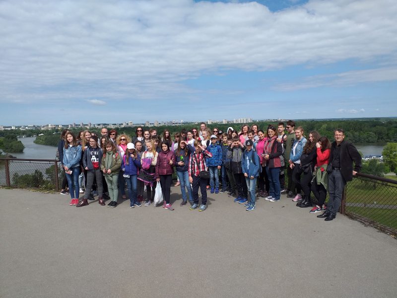 Nasledujúce ráno bolo všetko pripravené tak, že žiaci sa po raňajkách v rodinách stretli na pôde školy a spoločne veľkým autobusom odišli do hlavného mesta Srbska Belehradu, nielen s učiteľkou školy Libuškou, ktorá tlmočila, ale odbornú prednášku mal prichystanú aj profesionálny sprievodca. Previedol nás Kalemegdanom – Belehradskou pevnosťou, z ktorej sme si pozreli aj sútok Dunaja a Sávy, ktorá tvorí prirodzenú hranicu strednej Európy a Balkánskeho poloostrova, ale aj centrum hlavného mesta, ulicu Kneza Mihajlovu, kde sme mali krátky rozchod. Vzápätí sme sa autobusom vracali späť do Starej Pazovy, kde nás čakal spoločný obed a prehliadka evanjelickej fary, kostola s odborným výkladom pána učiteľa dejepisu Jaroslavom, pozreli sme si Etnoizbu a mali sme 30-minútový rozchod. Následne išli deti do rodín, nachystať sa na dlho očakávaný Deň školy. Pred 18. hodinou sme sa všetci zišli v Dome kultúry, v divadelnej sále s kapacitou 400 miest, ktoré boli obsadené do posledného miestečka. Domáca televízia „S Vami a pre Vás“ natočila rozhovory so žiakmi ZŠ hrdinu Janka Čmelíka, ale aj s pánom riaditeľom a zástupkyňou Matice slovenskej Zlaticou Gažovou. https://www.youtube.com/watch?v=2rf5sTfscPA