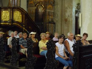20.jún,posledný jarný deň, už od rána pekný ,slnečný akoby pozýval prežiť niečo nevšedné, obohacujúce. A tak aj bolo. Skupina matičiarov a sympatizantov navštívila starobylú Trnavu, ktorá tento zámer vrchovato splnila. Cesta pohodlným autobusom ubehla veľmi rýchlo a my sme sa ocitli na najvyššom bode historického jadra mesta, kde sa nachádza najstaršia pamiatka Trnavy – pozostatky románskeho karnera a pôdorys starého kostola sv. Mikuláša. V tesnej blízkosti stojí Bazilika sv. Mikuláša, nádherný trojloďový gotický kostol, ktorého stavba začala v roku 1380 s neskoršou barokovou dostavbou. Pamiatkami Trnavy nás sprevádzala pani Janka Judinyová, ktorá navrhla aj trasu prehliadky a sprievodca historickými pamätihodnosťami Trnavy pán Mak , ktorý nás oboznámil s históriou Trnavy ležiacej na úrodnej nížine osídlenej už v mladšej dobe kamennej. Je najstarším mestom Slovenska, ktoré ako prvé v roku 1238 získalo práva slobodného kráľovského mesta. V bazilike sv. Mikuláša sme mohli obdivovať pôvodné nástenné maľby, bohatú štukovú výzdobu, gotické epitafy zo 14. storočia, barokovú kaplnku v ktorej je umiestnený obraz Panny Márie Trnavskej. Počas vojen a morovej epidémie sa na tvári Panny Márie objavil pot a krvavé slzy. V roku 2008 bol kostol vyhlásený za Mariánske pútnické miesto. Kráčajúc historickými uličkami k ďalšiemu kostolu sme obdivovali starostlivo udržiavané budovy, dávnych svedkov slávnej Trnavy, komplex univerzitných budov, množstvo pamätných tabúľ a rôznych pamätihodností.