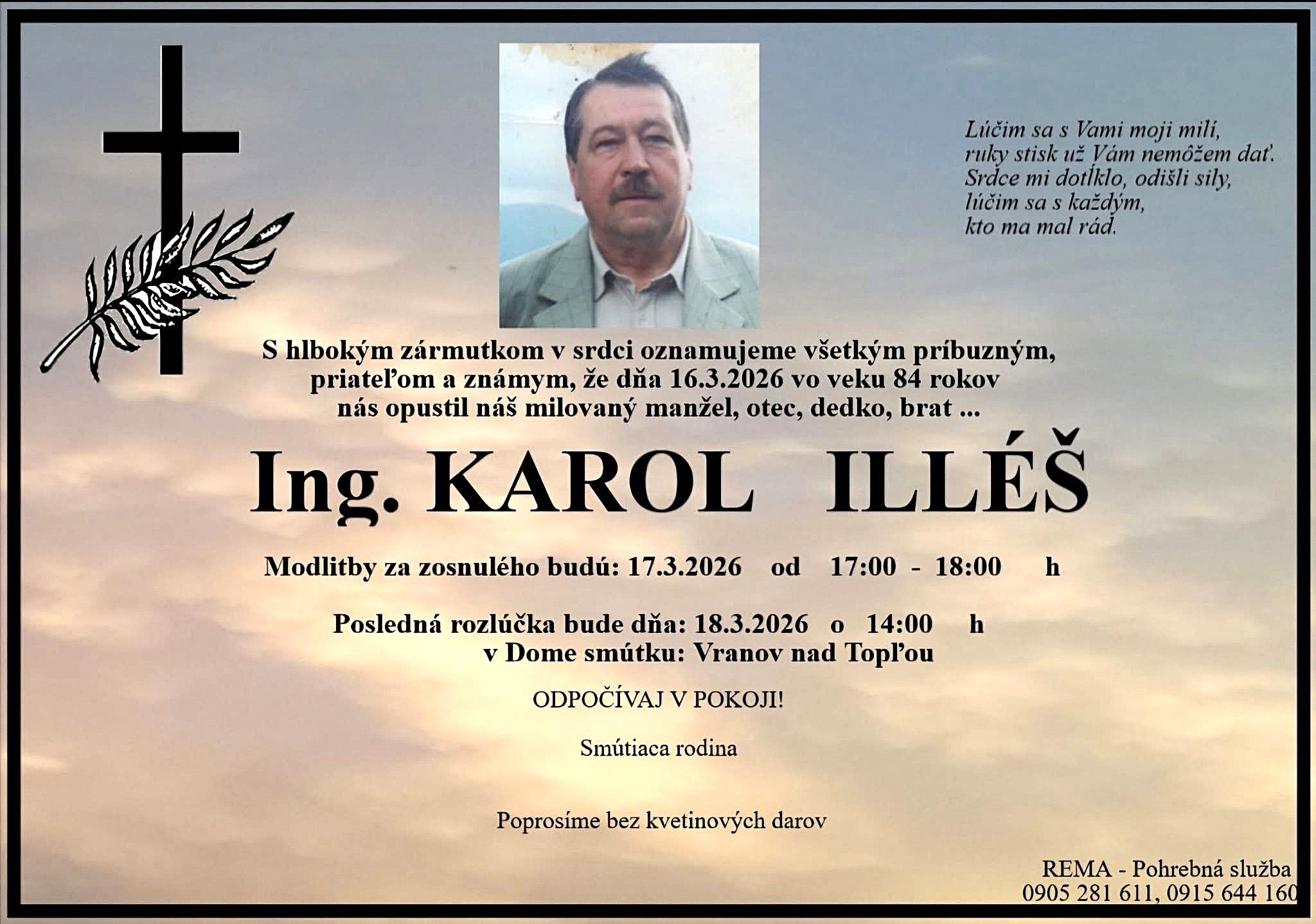 S hlbokým zármutkom oznamujeme, že nás navždy opustil významný matičný činovník Ing. Karol Illéš, narodený 5. februára 1942 vo Vranove nad Topľou.