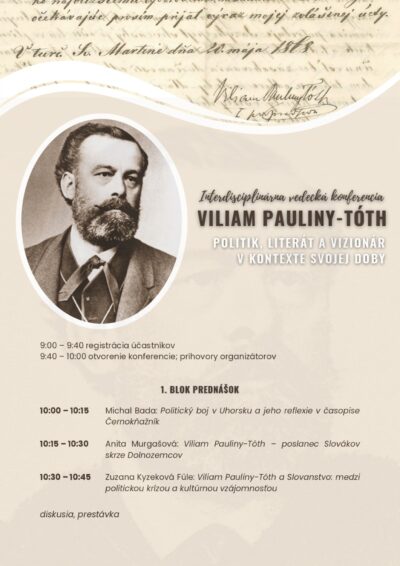 Cieľom našej interdisciplinárnej konferencie je priniesť nový pohľad na Viliama Paulinyho-Tótha a predstaviť ho nielen ako politika a podpredsedu Matice slovenskej, ale ako komplexnú osobnosť – novinára, satirika, literáta a moderného organizátora národného života.