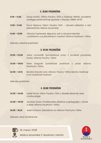 Organizátor: Slovenský historický ústav Matice slovenskej